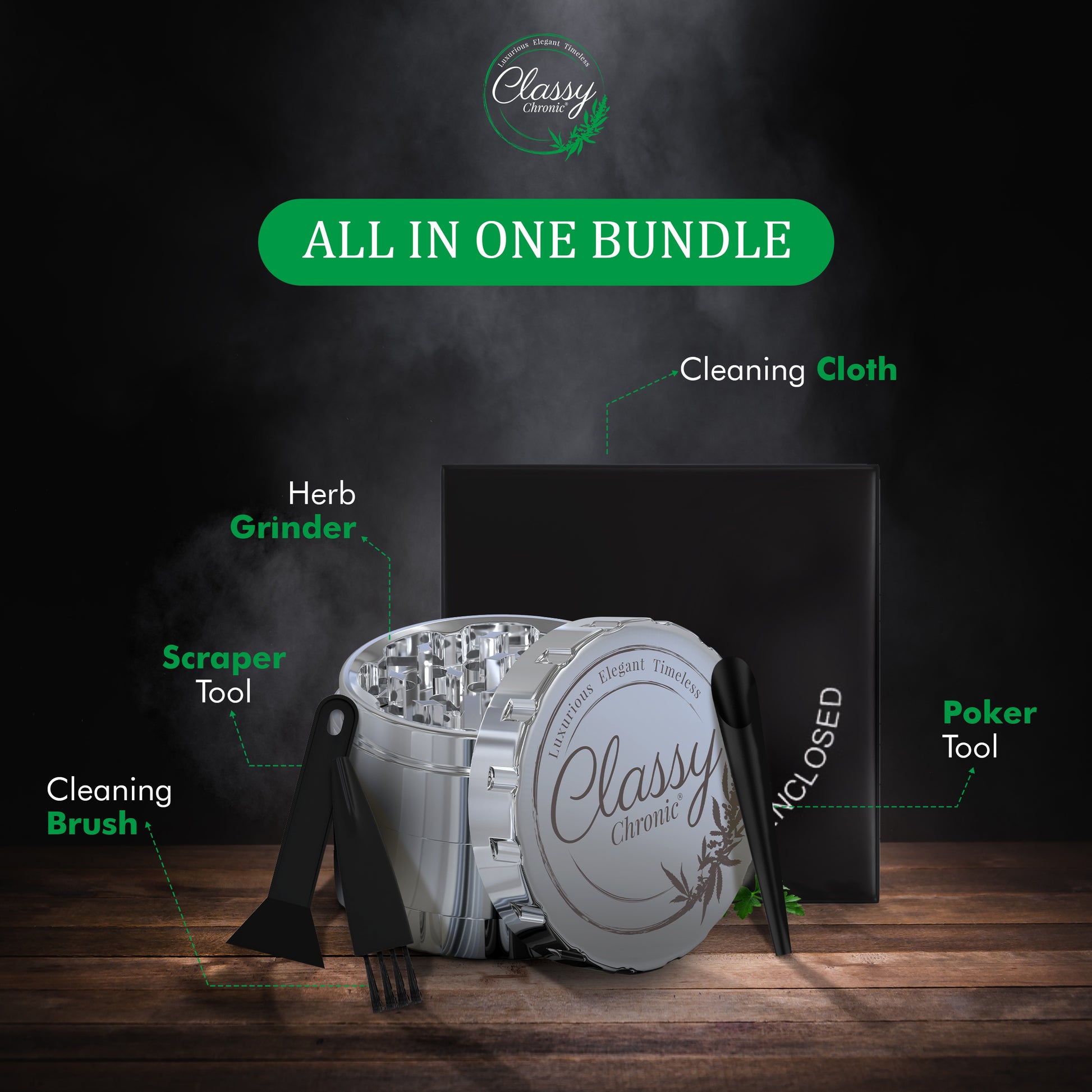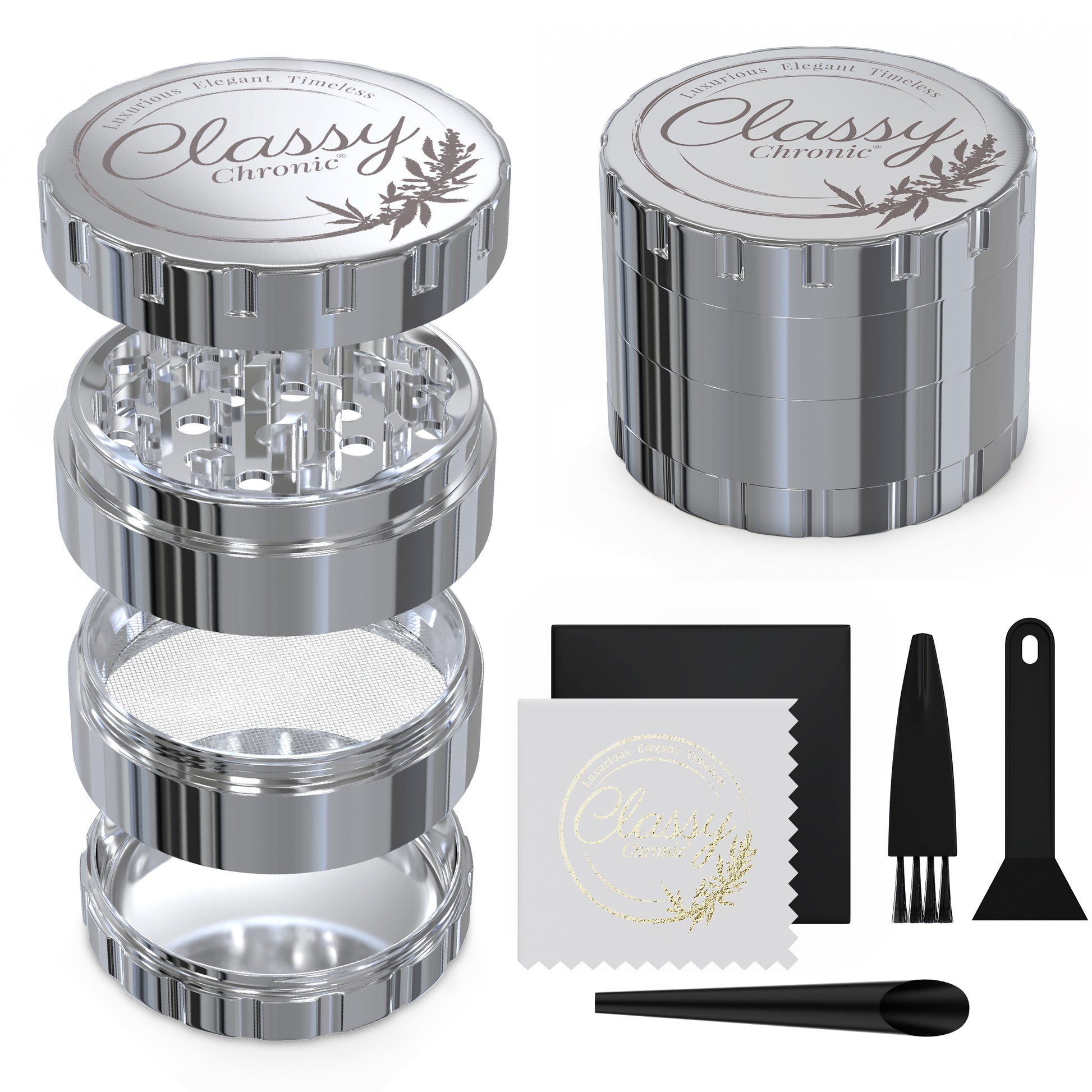 The Polished Silver Grinder brings modern minimalism to your rituals. With a smooth, polished finish and a precision 4-piece build, this grinder is both durable and stylish. Crafted from premium stainless steel, it’s designed for consistent results while remaining eco-conscious. A staple for those who appreciate clean, timeless design.