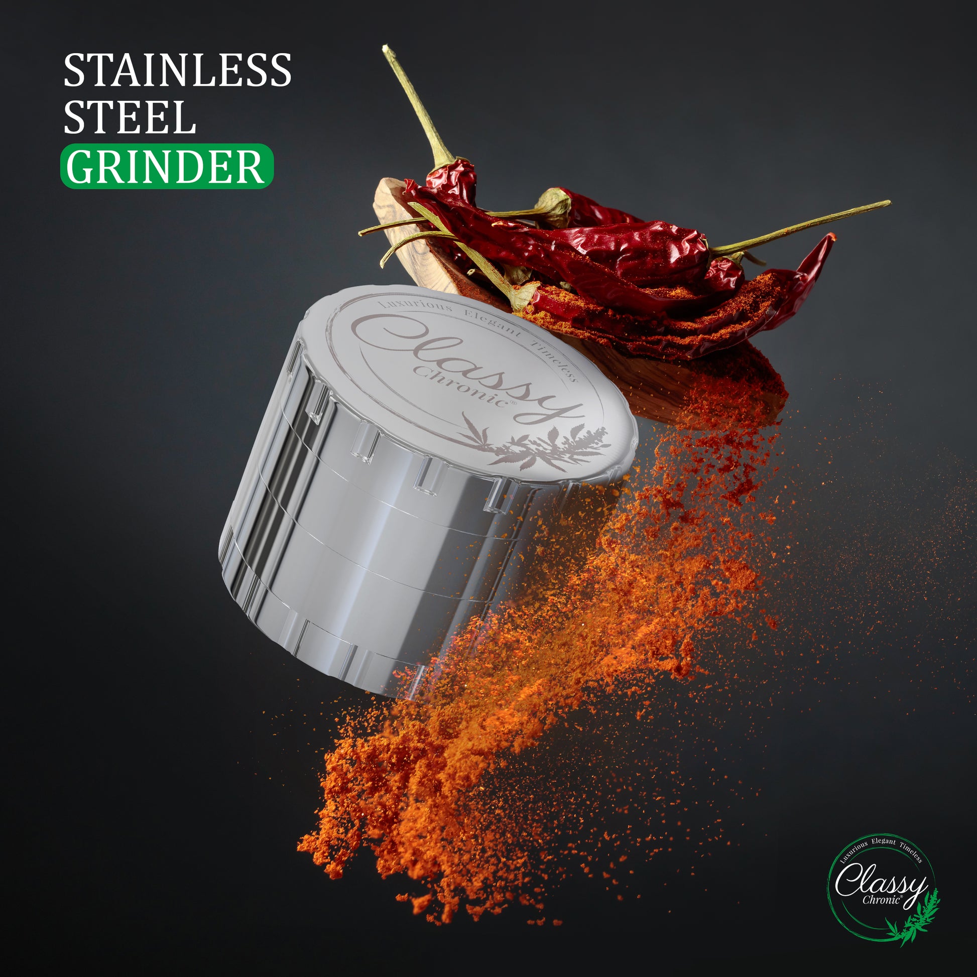 Polished Silver Stainless Steel Grinder – Sleek Minimalist Finish